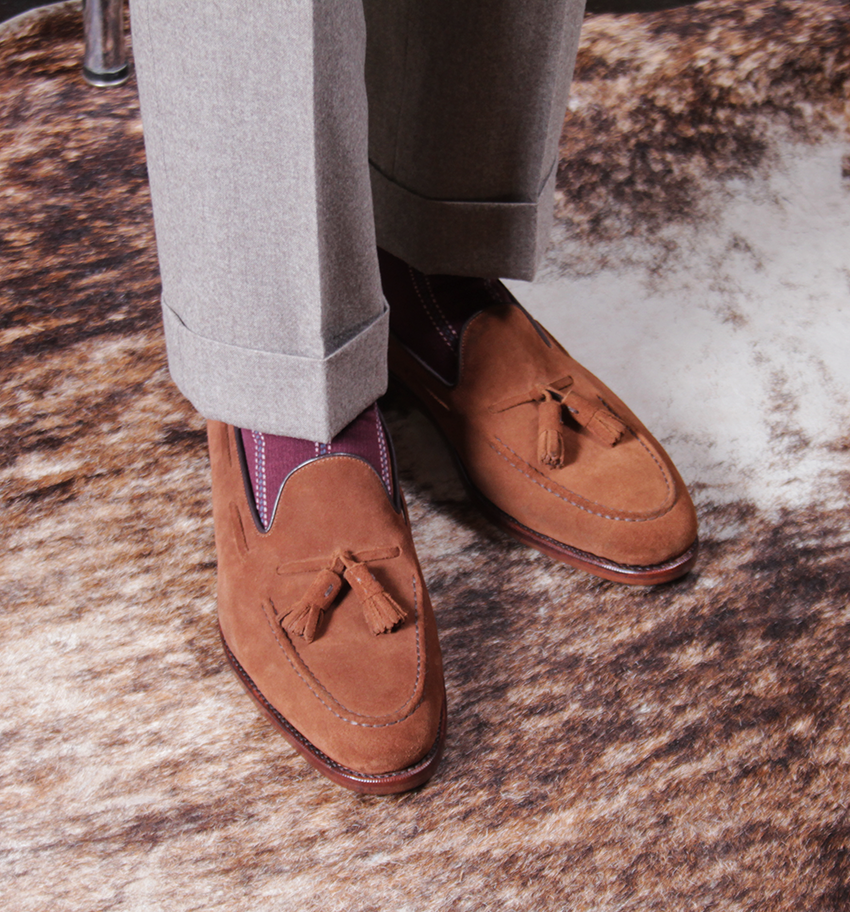 軽快で色気のある見た目ですが、英国製スウェードをフル使いした贅沢仕立。